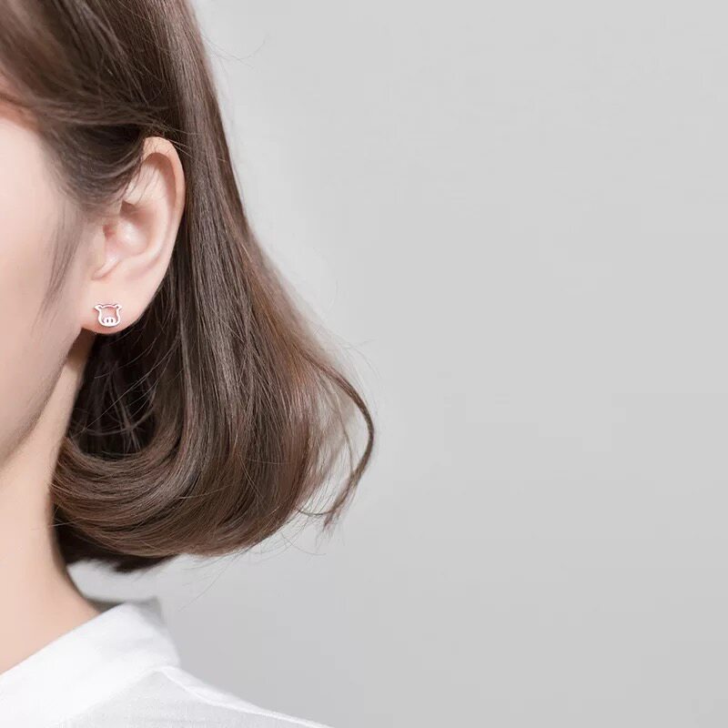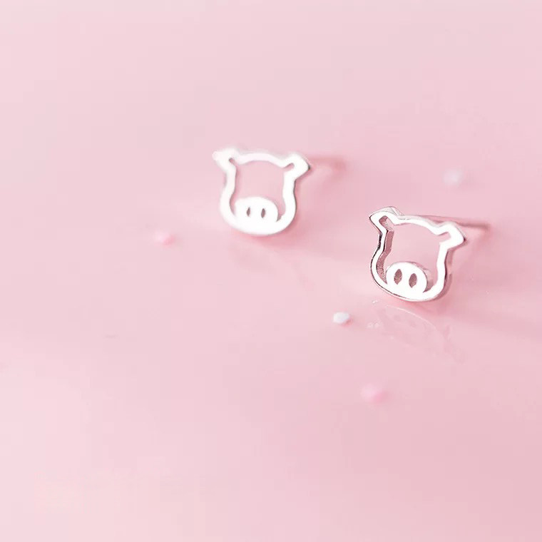 MICY sterling silver s925 earrings female Korean version of the small fresh hollow pig cute natal year animal auspicious earrings