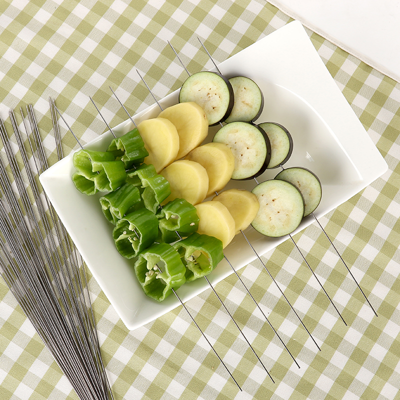Stainless steel grilled skewer round flat skewer household lamb skewer skewer grilled meat skewer grilled meat skewer skewer iron skewer tool utensils