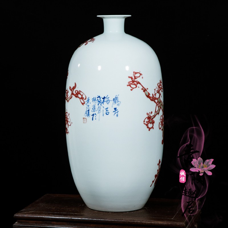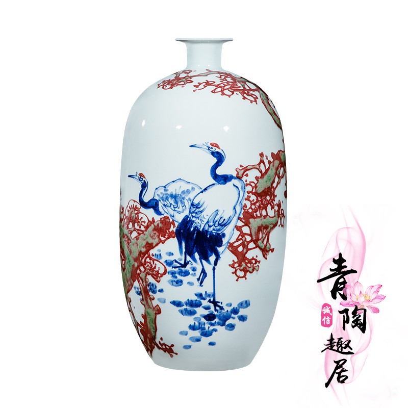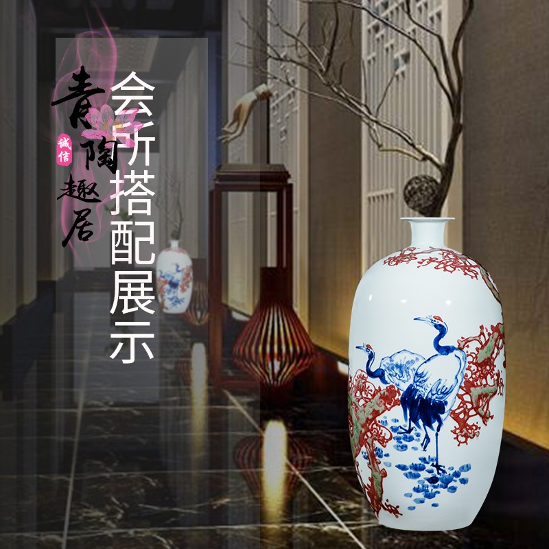 Jingdezhen ceramic hand-painted vase blue and white glaze red living room countertop decoration home decoration