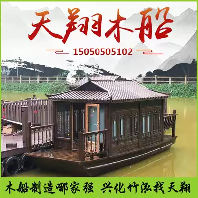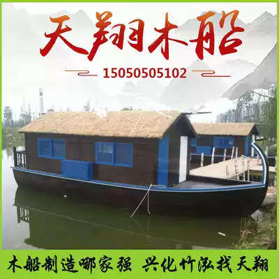 Wooden boat custom deposit electric House Boat custom large house boat custom freight contact customer service special large specification House ship special paint brush