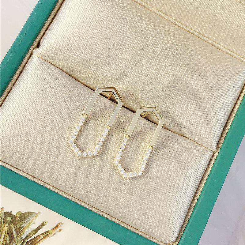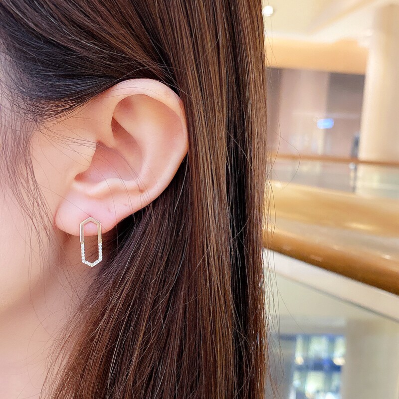 FAD Japanese light luxury light jewelry 10K gold moissanite diamond-shaped smart earrings versatile small and exquisite commuting