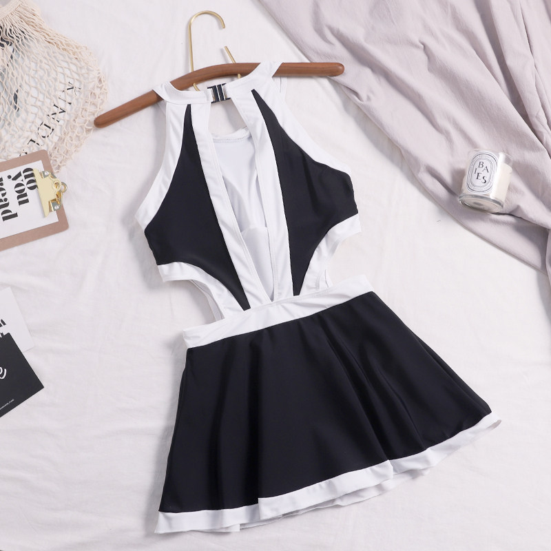 2021 new swimwear women's summer small breasts gather for a collage and a thin belly spa conservative even with a skirt-style flat corner swimsuit