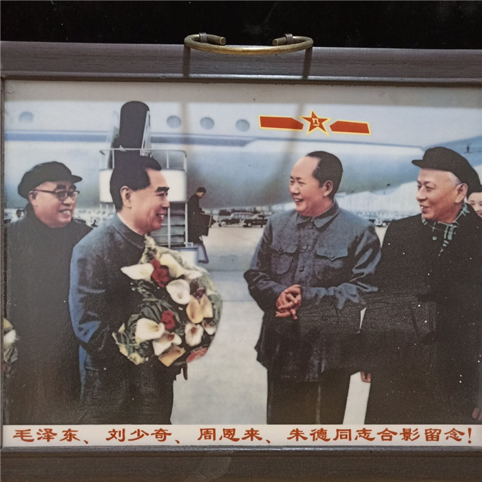 Antique Porcelain Old Antique Cultural Revolution Porcelain Porcelain Plate Painting Solid Wood Frame Copper Buckle Chairman Mao at the Airport