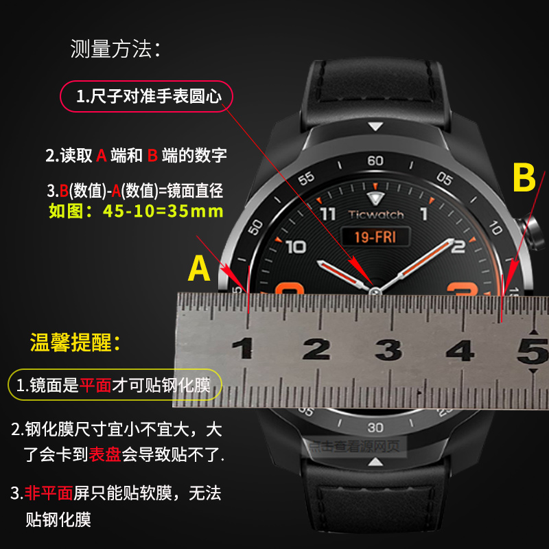 Pro Please do not shoot according to the size of the dial to actually measure the screen mirror diameter size of the tempered film diameter 23-46mm (2 5D arc edge tempered film) 3 pieces of free suction cup Please note