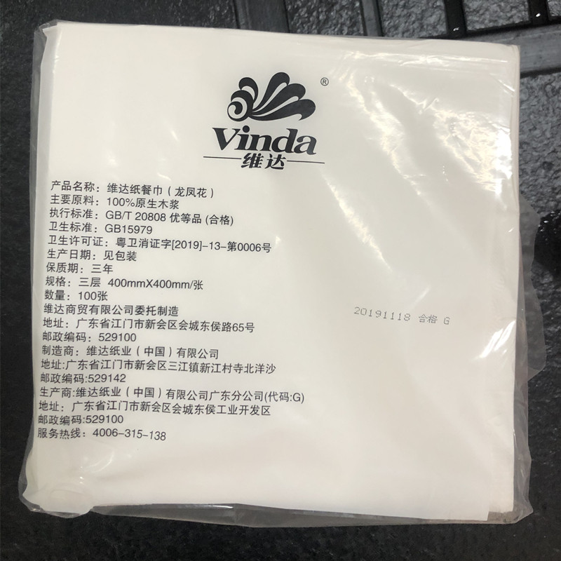 VS1001Vida large napkin 3 floors of square paper canvas steak in western restaurant tissue 400*400mm 3 pack