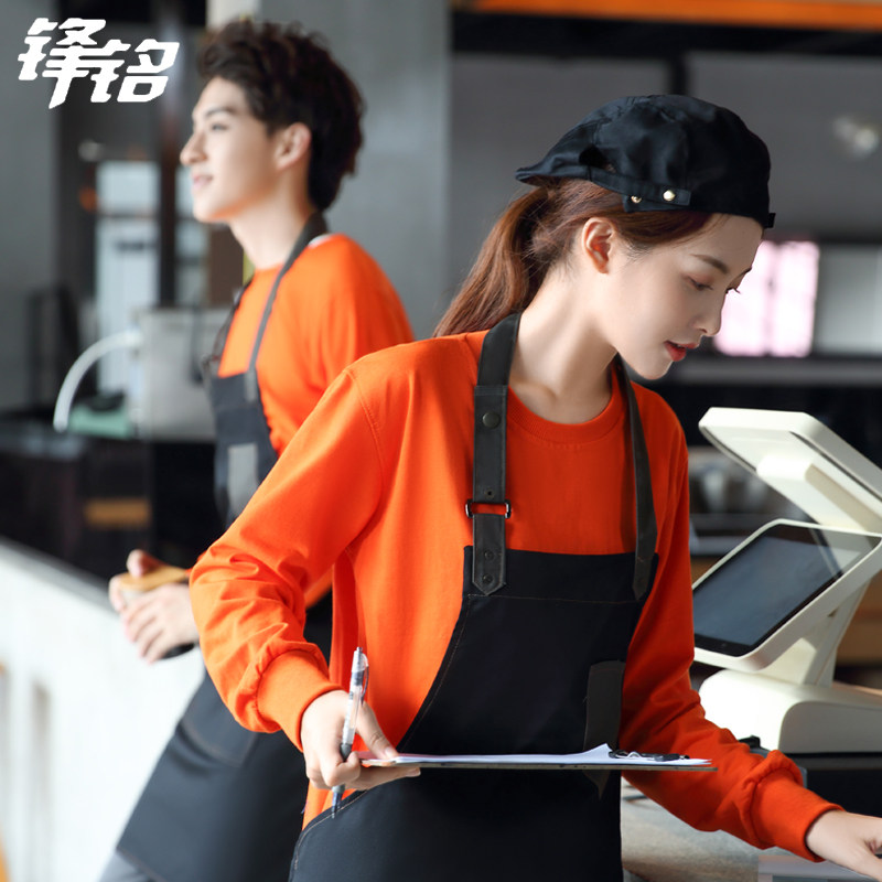 Catering Attendant Workwear Short Sleeve Round Collar T-Shirt Pure Cotton Custom Milk Tea Hot Pot Barbecue Hotel Dining Room Dining Room