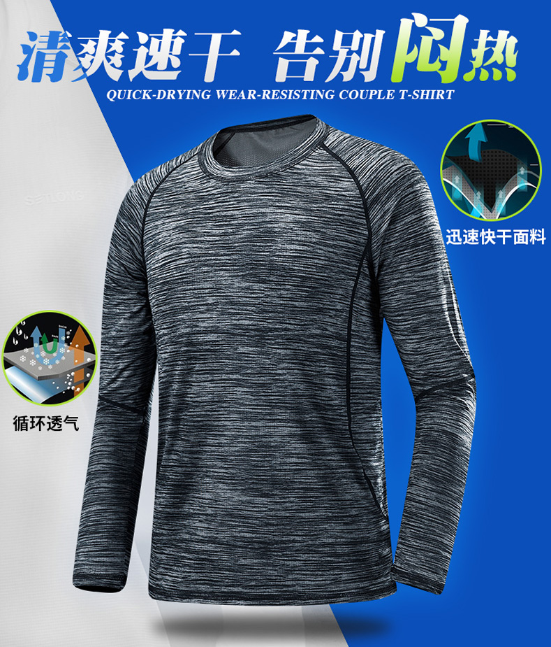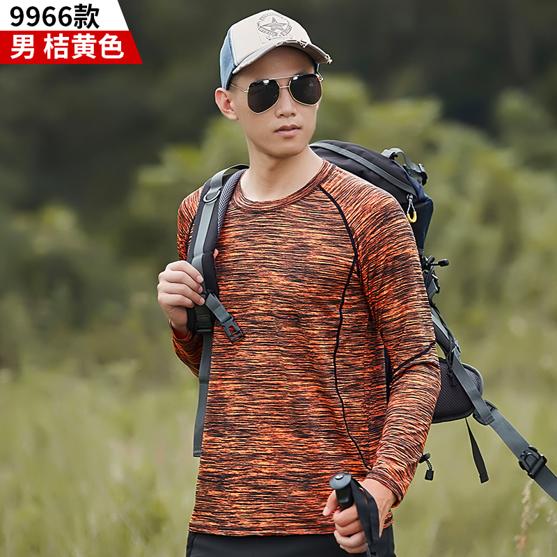 Outdoor quick-drying T-shirt men's long-sleeved microcrystalline hole breathable sweat-absorbing quick-drying clothes men's sports hiking quick-drying mountaineering large size