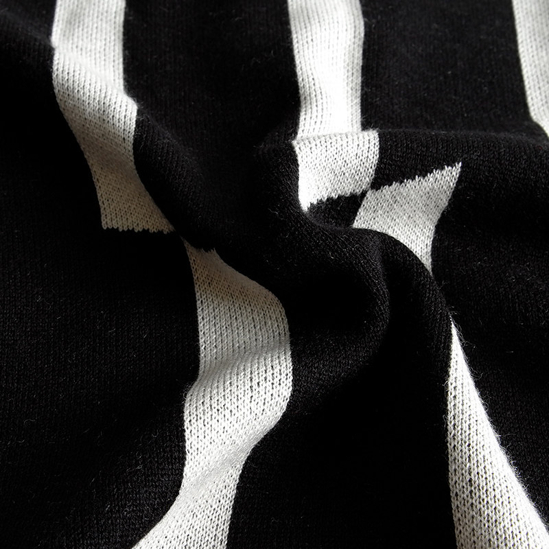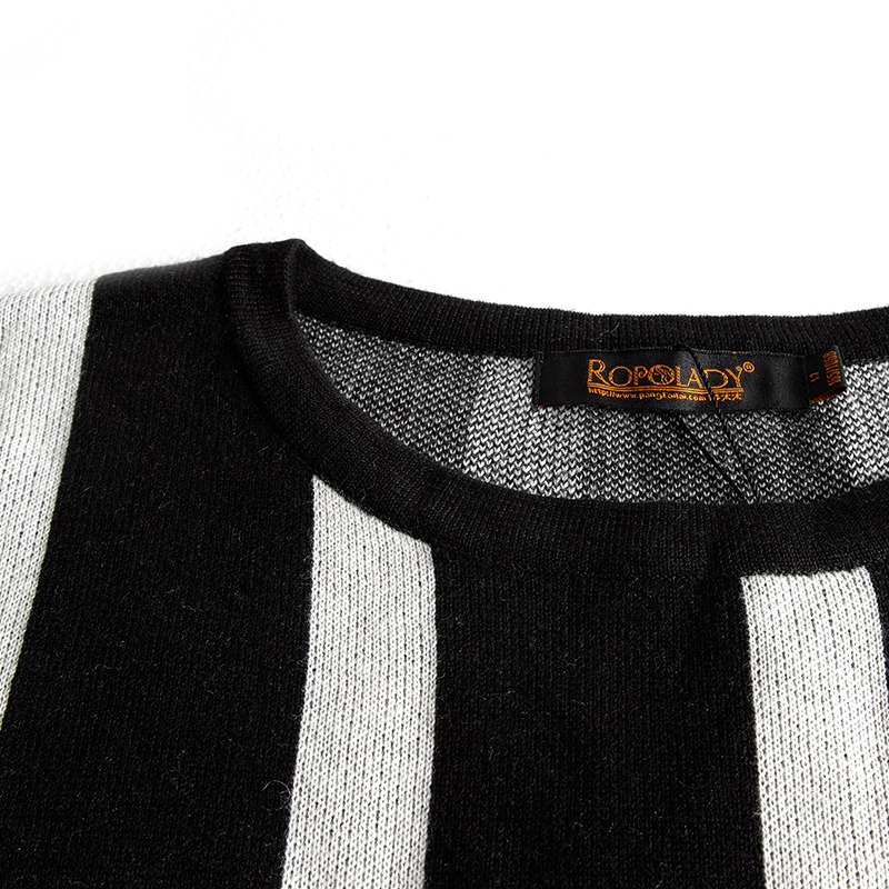 Fat lady large size women's clothing spring and autumn new fashion black and white vertical strip temperament Korean knitted sweater 418207510