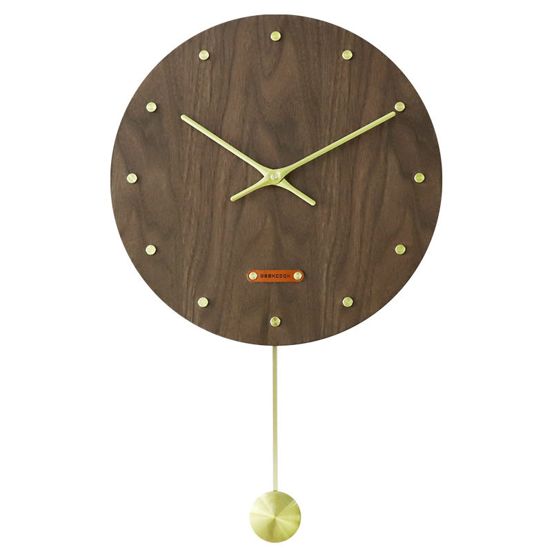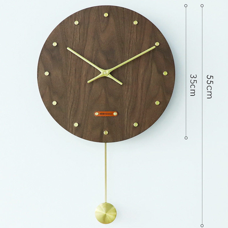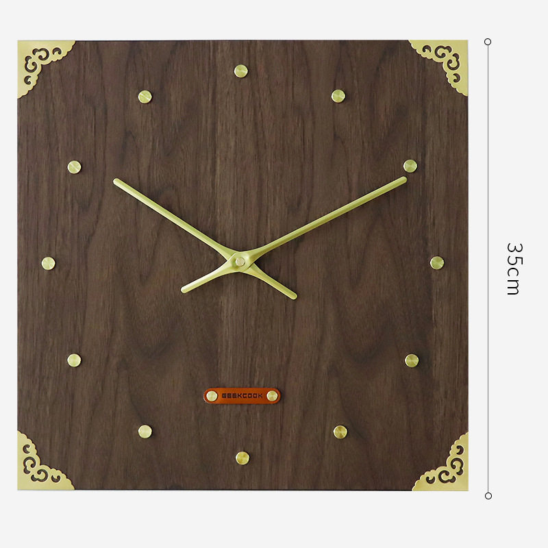 New Chinese classical wooden brass scale ultra-quiet Zen Ming and Qing style 14-inch mute wall clock swing clock