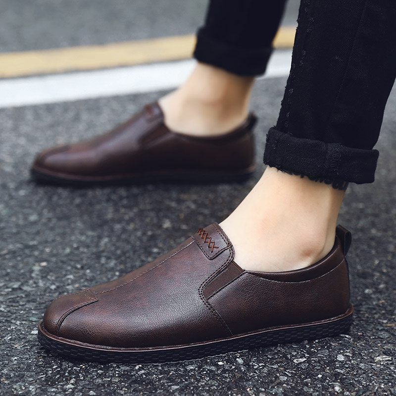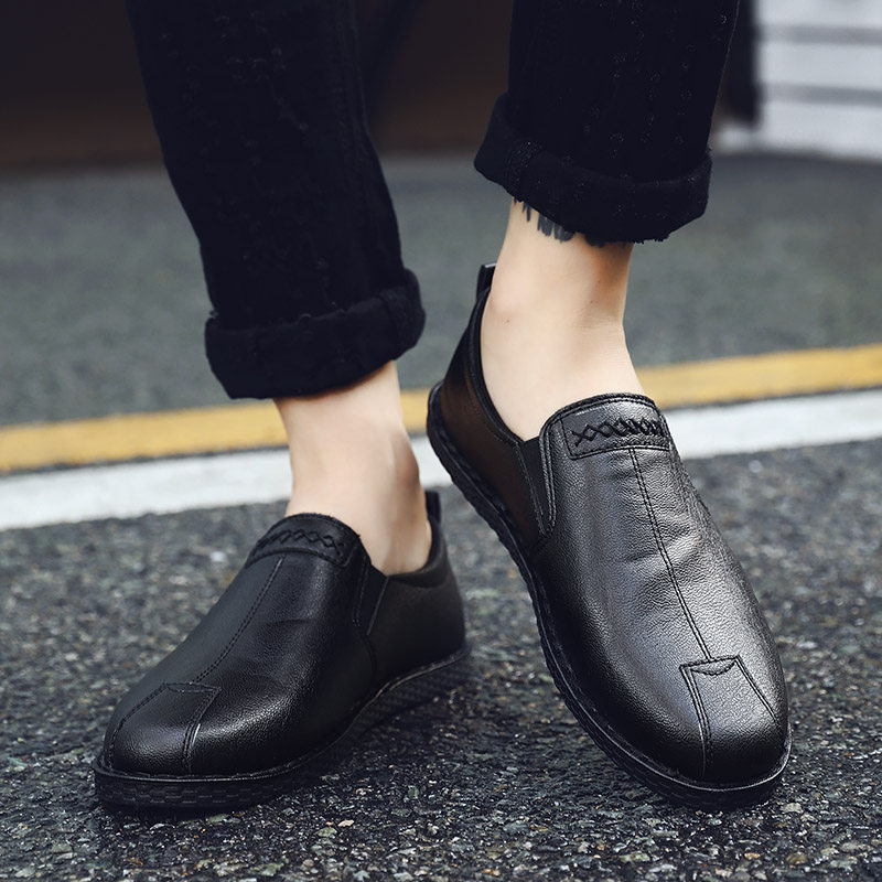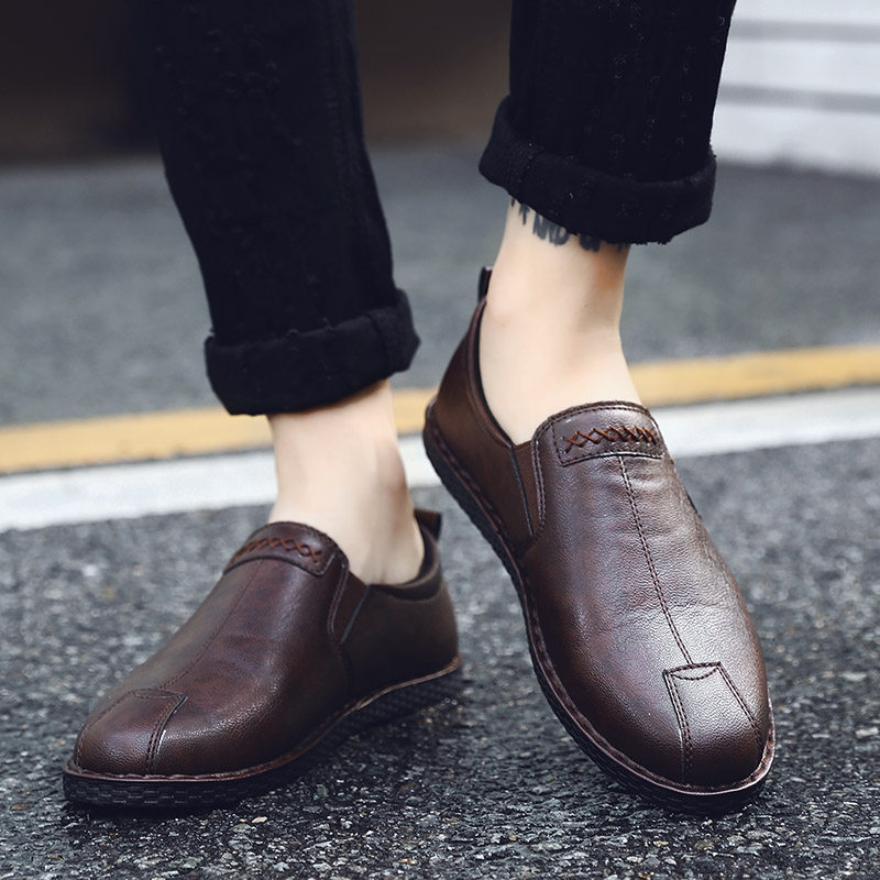 2021 new casual leather shoes men a pedal lazy driving work trend Joker beans tide shoes winter tide brand