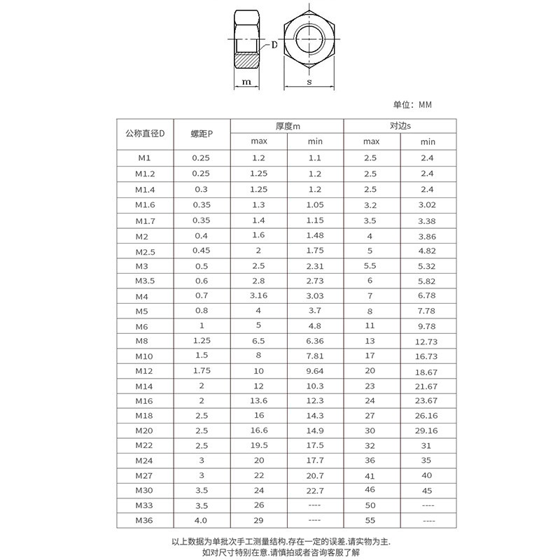 201 Hex Nut M2-M24