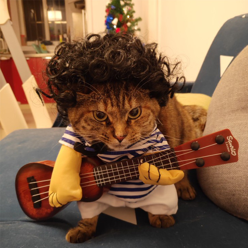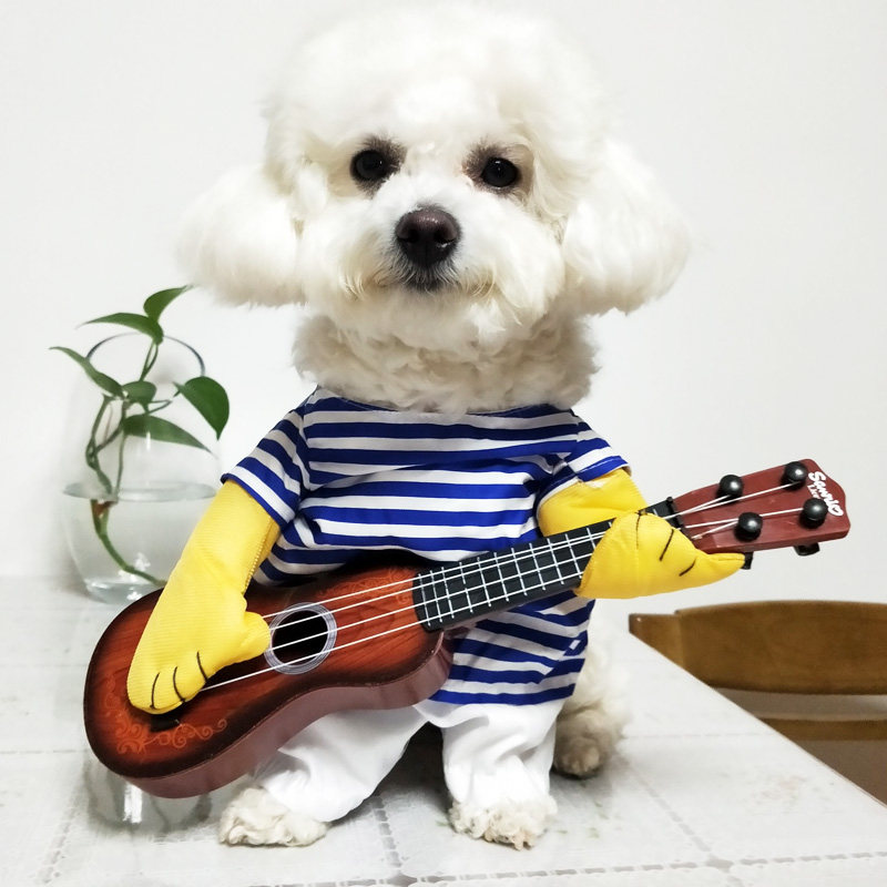 Douyin with the same guitar, net red cat clothes, summer thin section, dog funny outfit, funny outfit, pet upright outfit