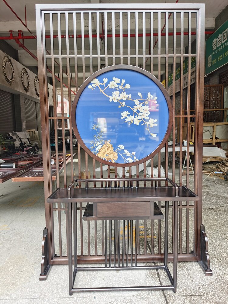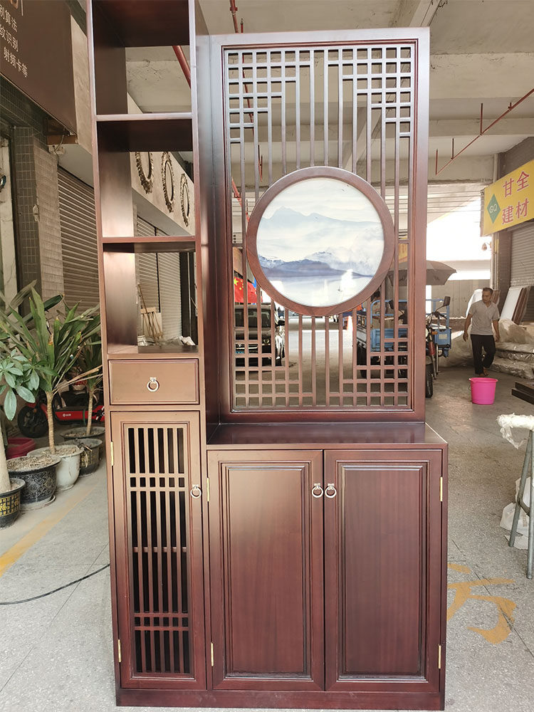 New Chinese-style screen partition living room porch decorative wall walnut solid wood Japanese-style grille fence whole house custom-made