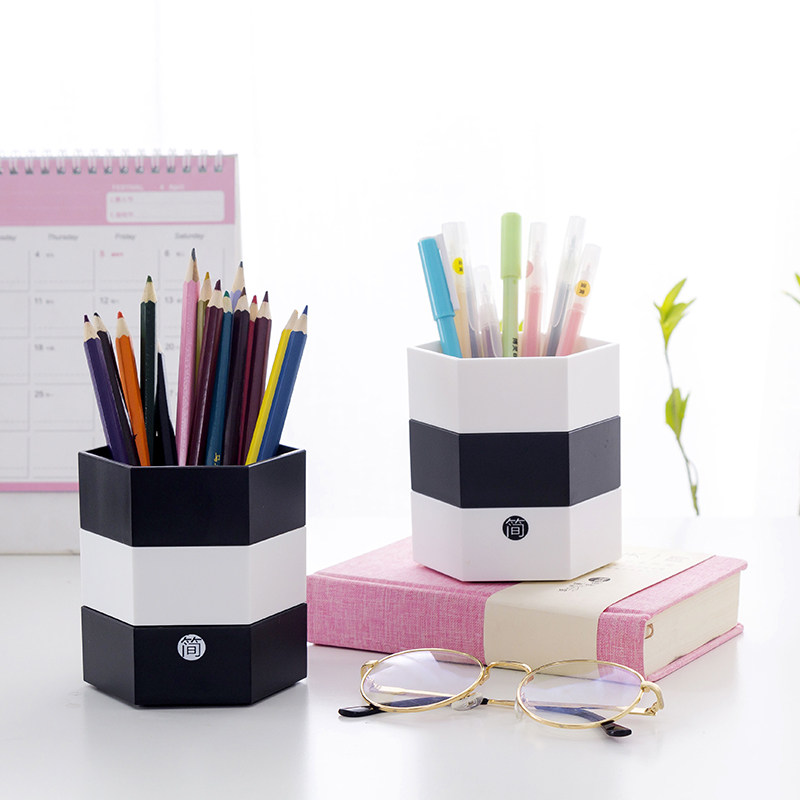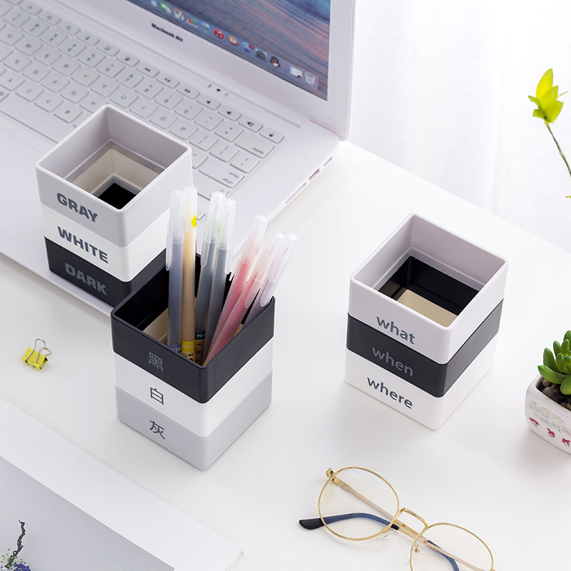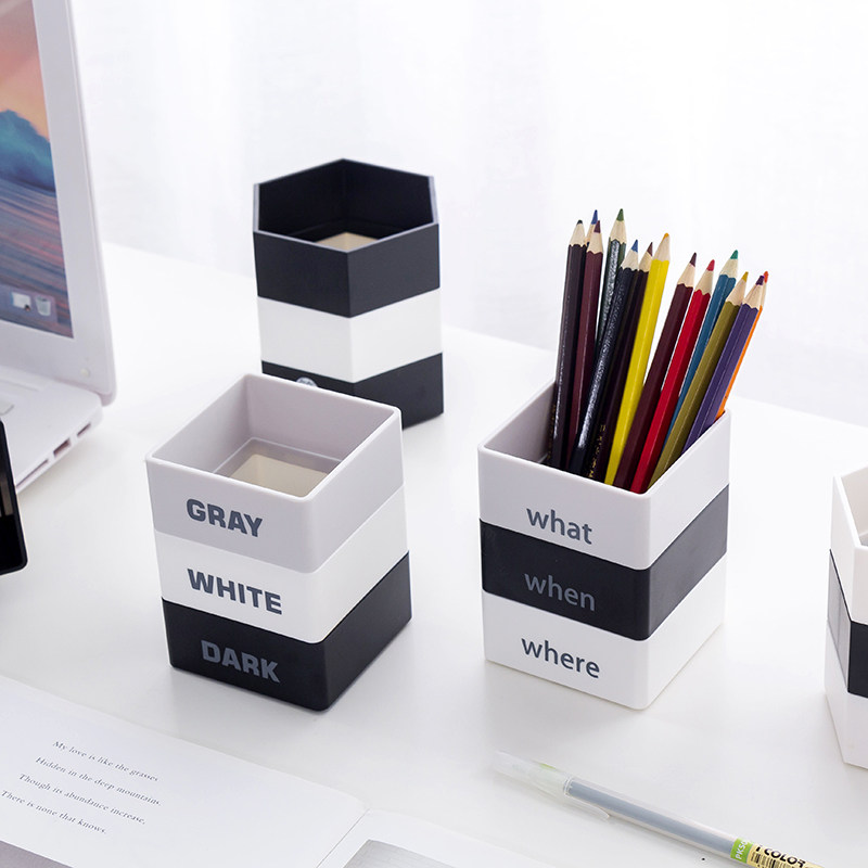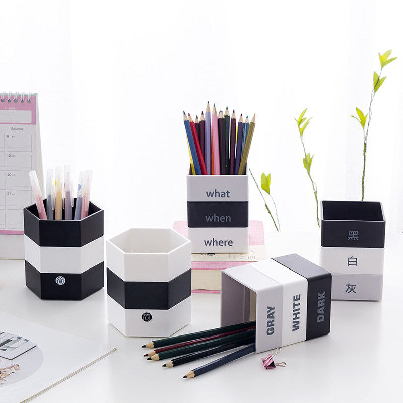 Penstric creativity and fresh student furniture for children with simple multi-function pen office stationery box for men and women European vintage desktop cute black and white plastic style