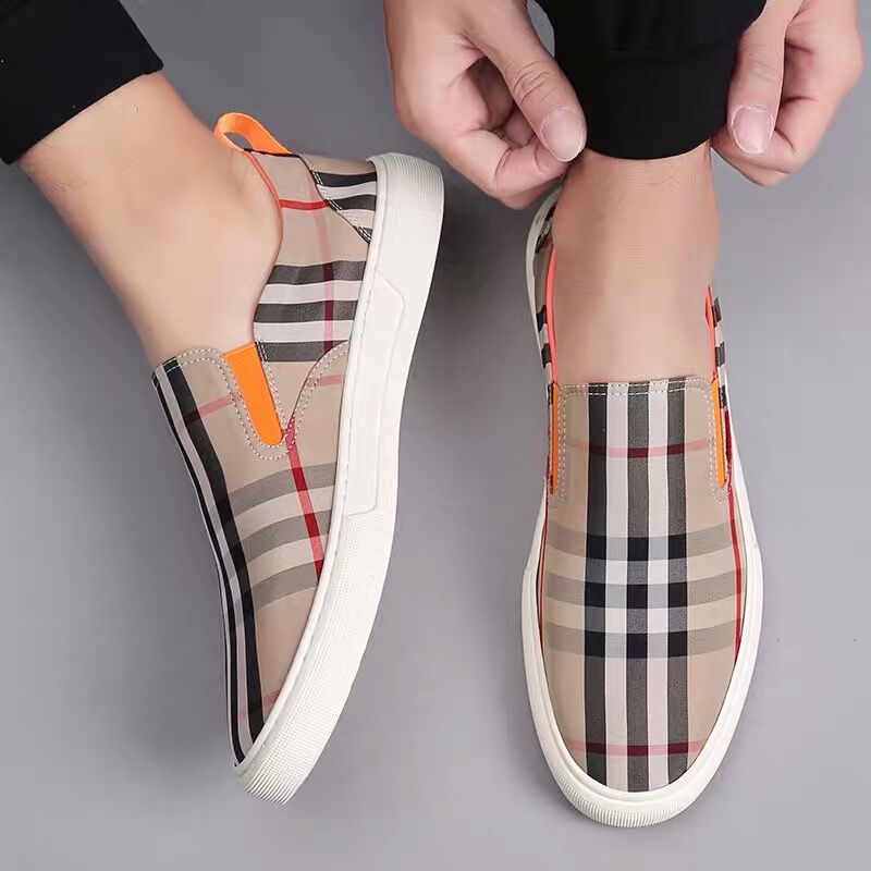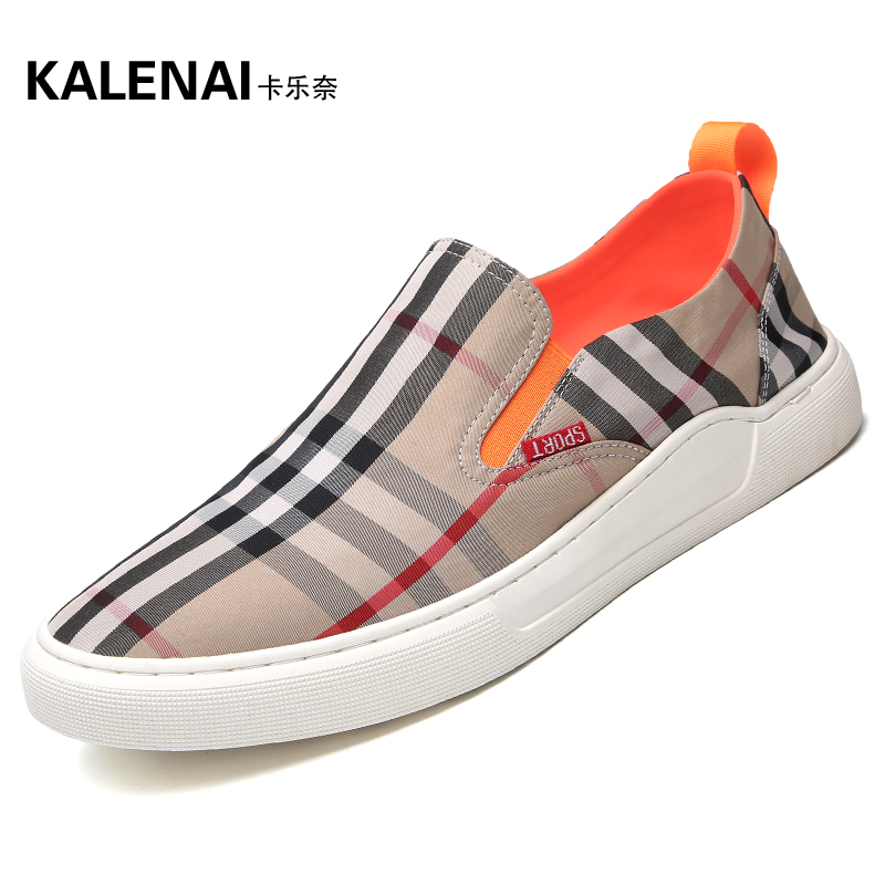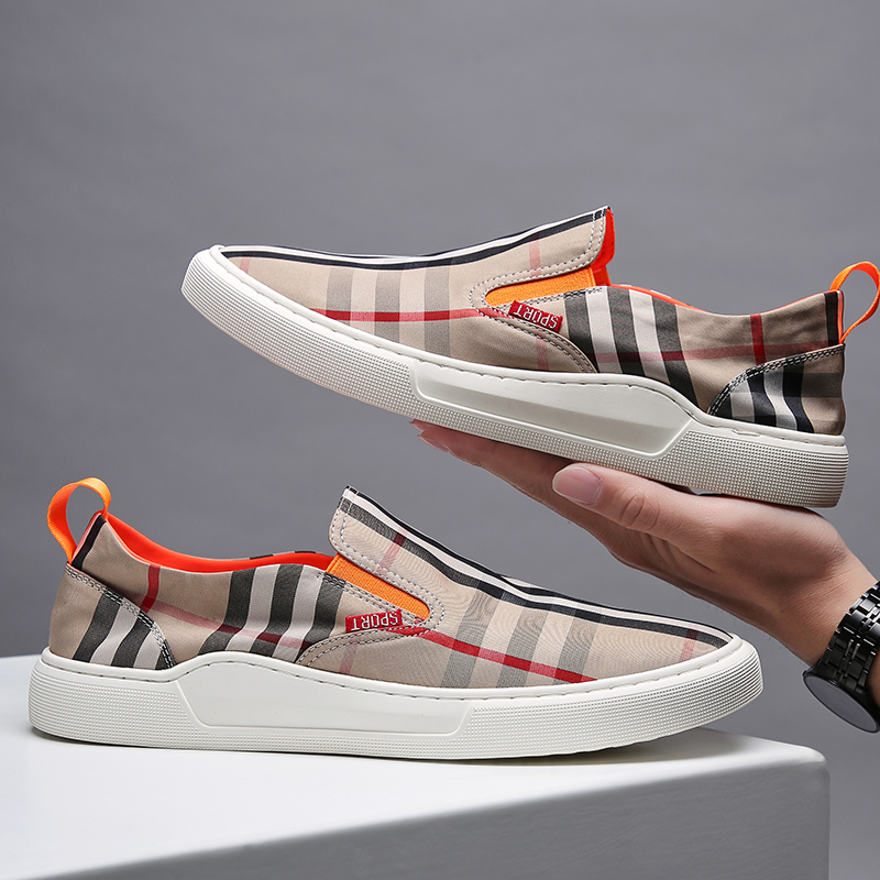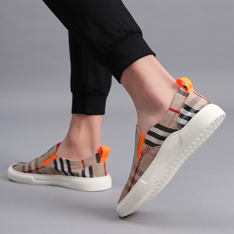 Printed plaid cloth shoes men's one foot pedal Korean version trendy summer shoes men's breathable canvas casual personality sloth shoes
