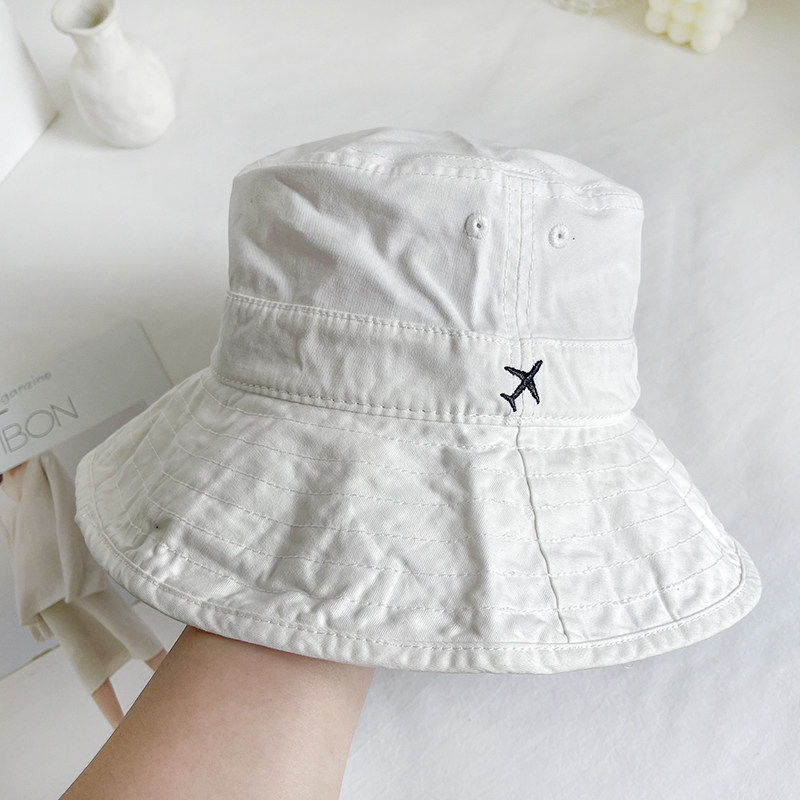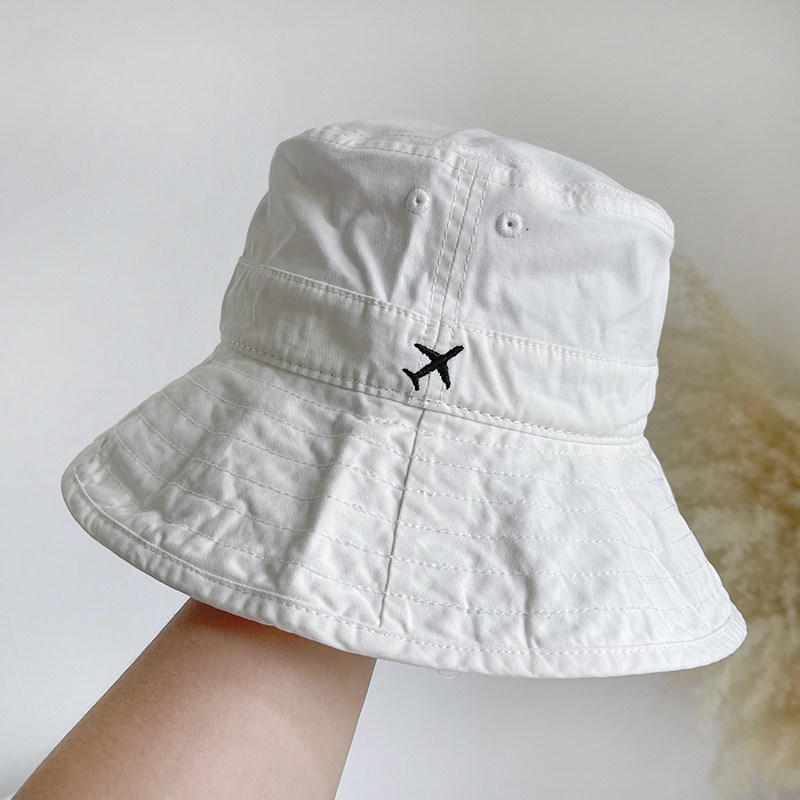 Cotton white fisherman hat Women's spring summer autumn sun protection hat Japanese art students embroidery plane solid color wild basin hat