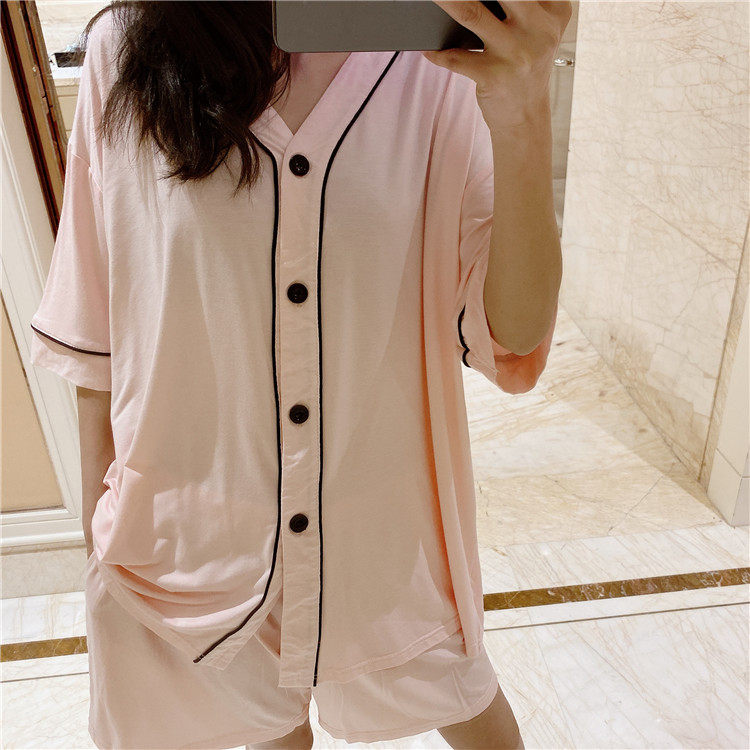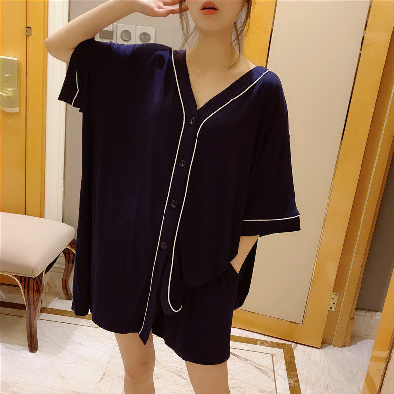 Short-sleeved shorts pajamas women's summer thin section modal cotton simple cardigan home service large size fat mm200 catties suit