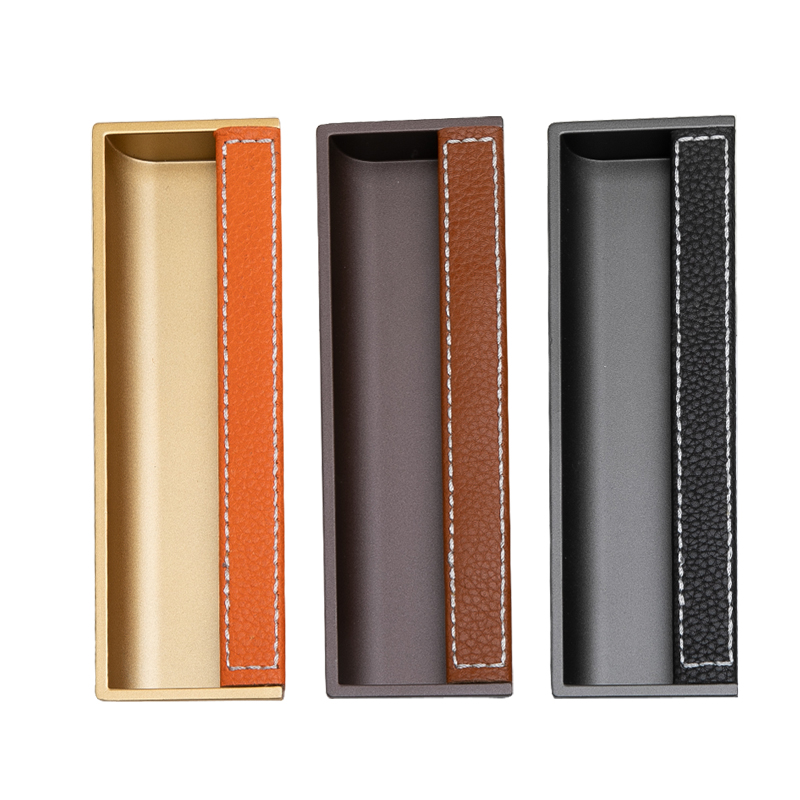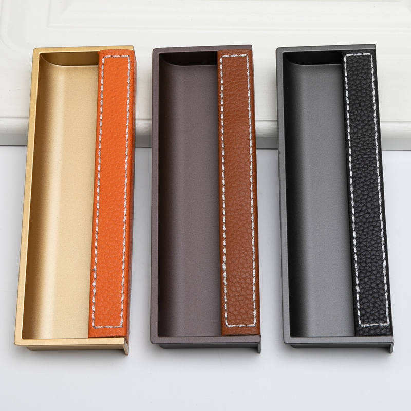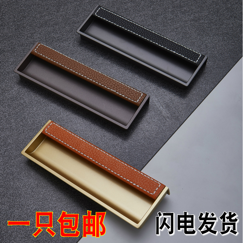 Leather cabinet door handle Embedded dark handle Cabinet wardrobe Sliding door handle Slotted handle European drawer handle