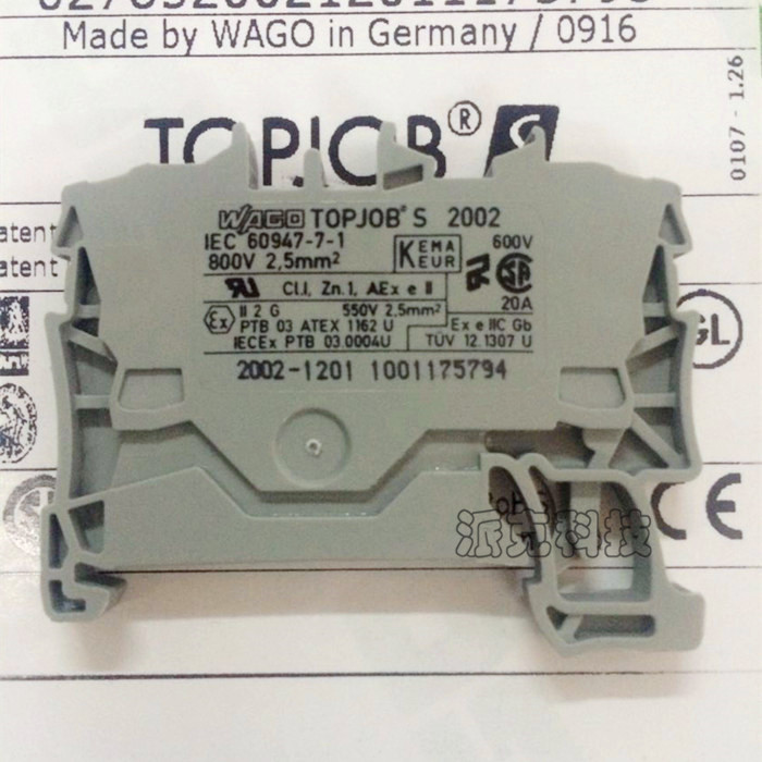 WAGO Germany ten thousand 2002-1201 second-wire rail mounted self-locking spring wiring terminal 2 5mm squared