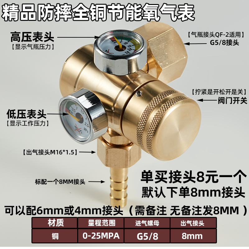 Small oxygen valve of all copper anti-wrestling oxygen acetylene propane pressure gauge reducer
