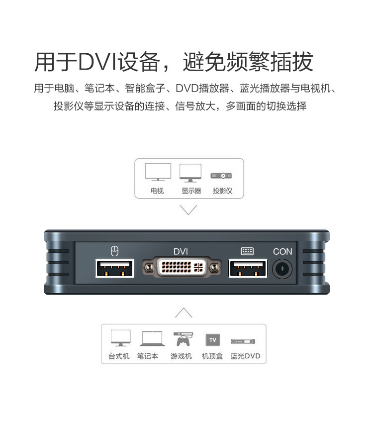 Two mainframes share keyboard and mouse, one monitor, two in and one out KVMDVI screen cutter switcher
