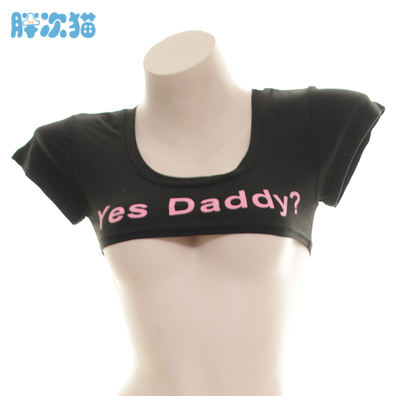 Yes Daddy? ultra short T-shirt cotton short sleeve T-shirt mesh red ins sexy T
