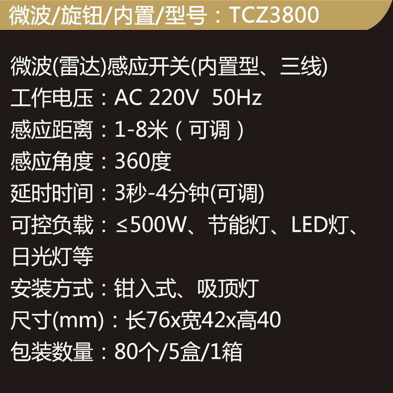 Detector TCZ3800 microwave radar human body intelligent sensor switch built-in 220V with LED energy saving lamp