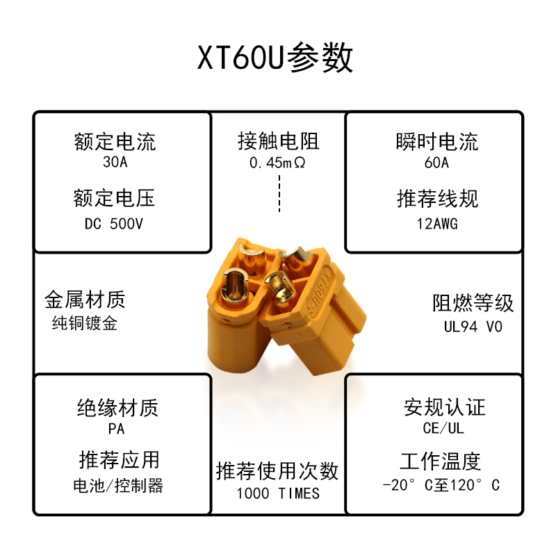 XT60u male and female connector socket model aircraft power accessories ams yellow lithium battery banana T plug connector