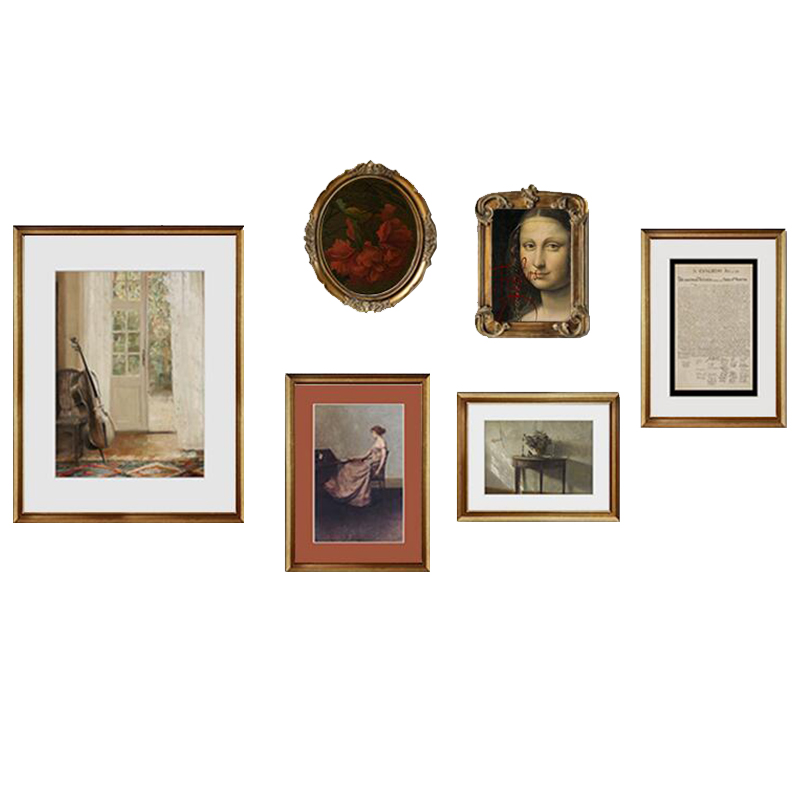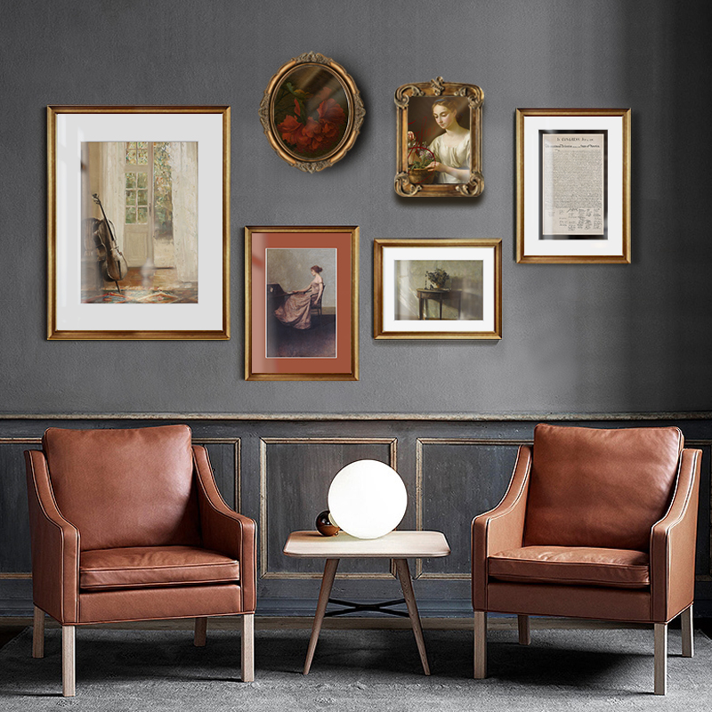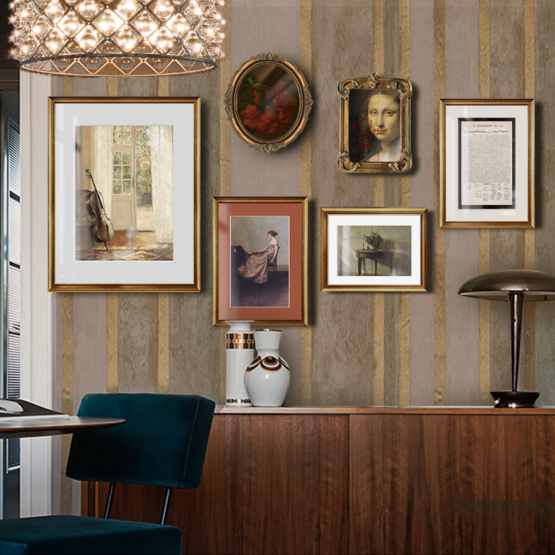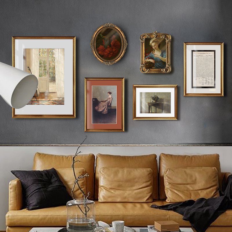 French sofa background decorative painting Light luxury retro niche art wall painting Living room mural villa combination wall painting