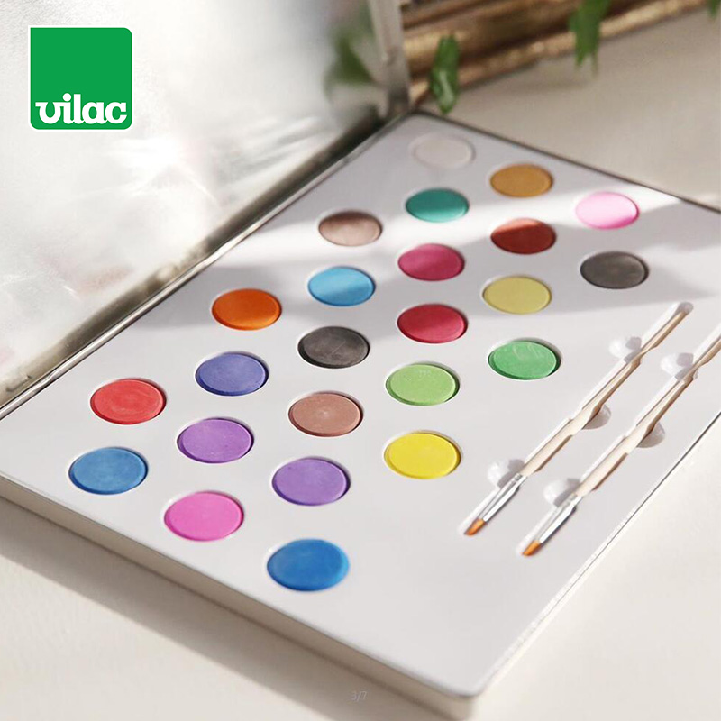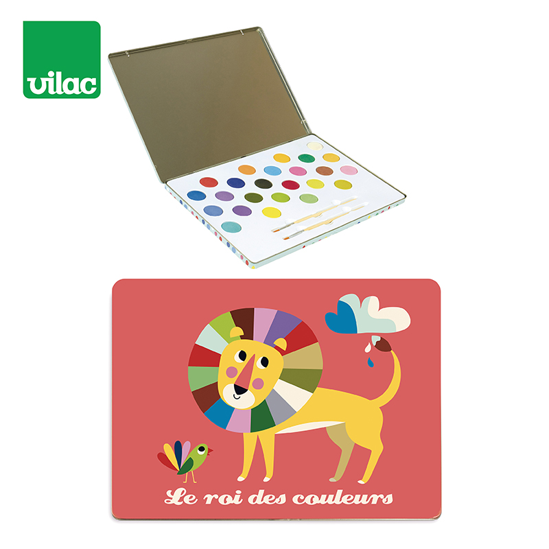 French Vilac water powder paint 24 color painting suit kindergarten children beginners drawing watercolor toys 4 years old