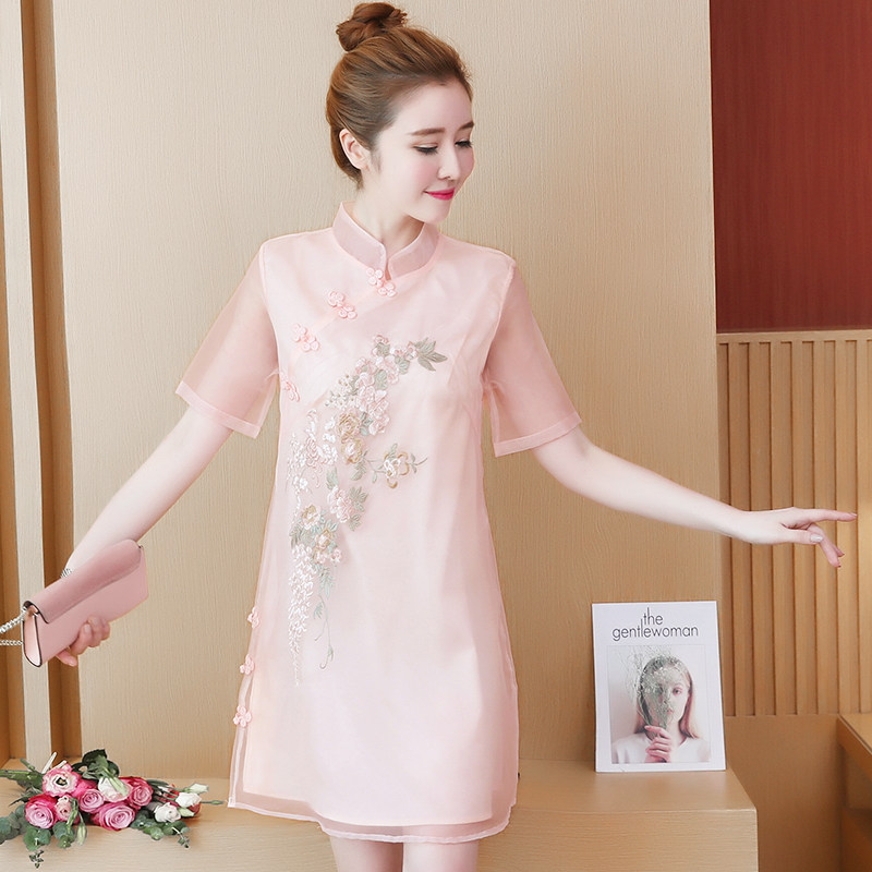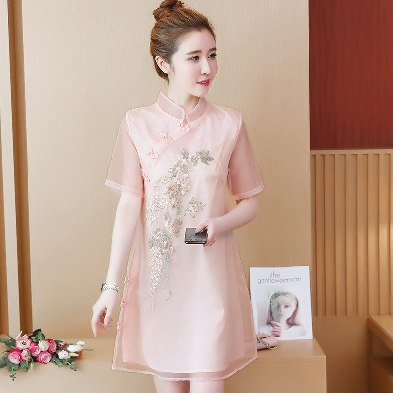 2023 summer new women's large size chiffon dress foreign style loose belly cover slimming improved cheongsam skirt for women