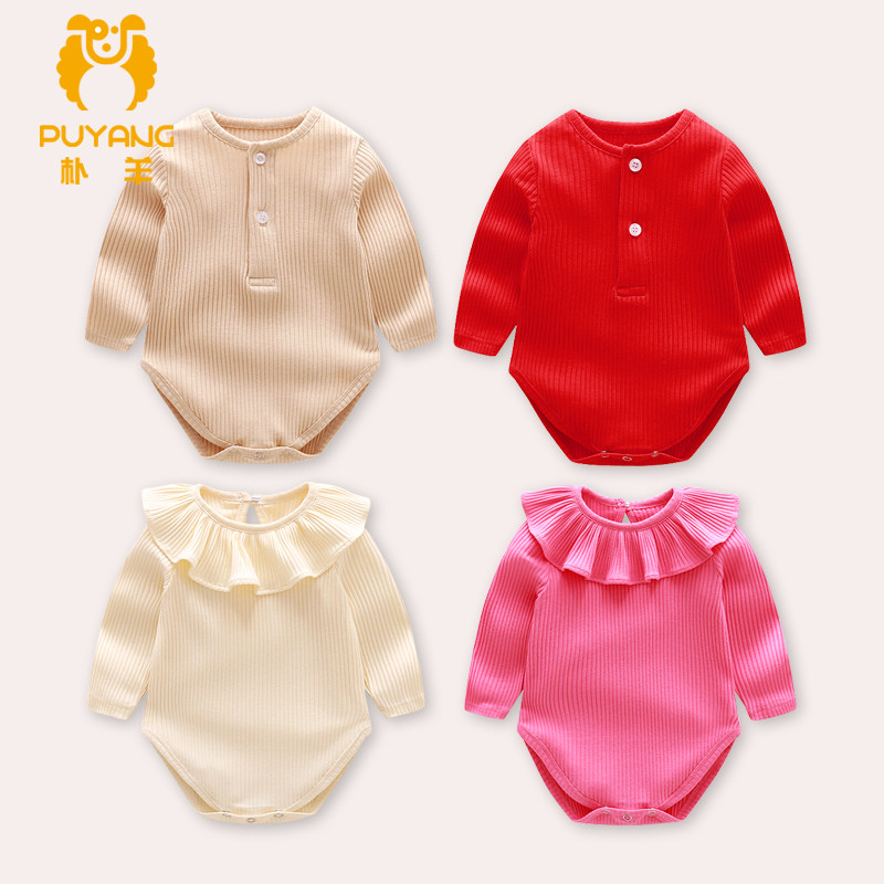 Spring and summer 0-1 year old baby pure cotton thin net red 2 long-sleeved jumpsuit baby romper bag fart romper thin section