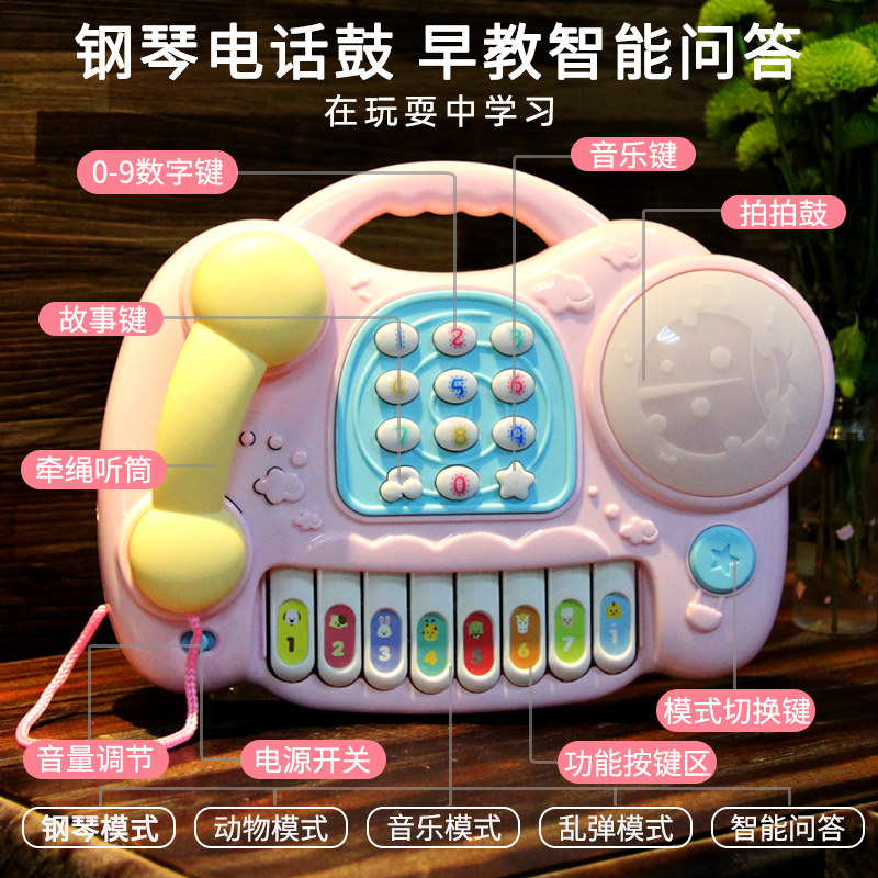 Children's toys simulation telephone landline baby puzzle music early education 0-1-3 years old boys and girls 8 months baby