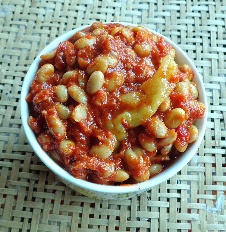 Chili beans with a pinch of salt, ginger and silk noodles.