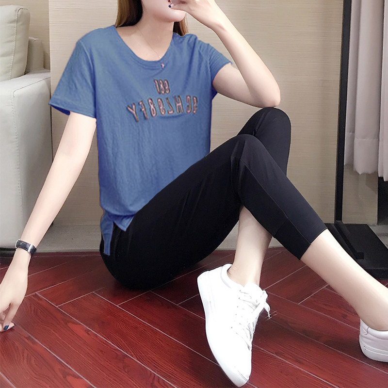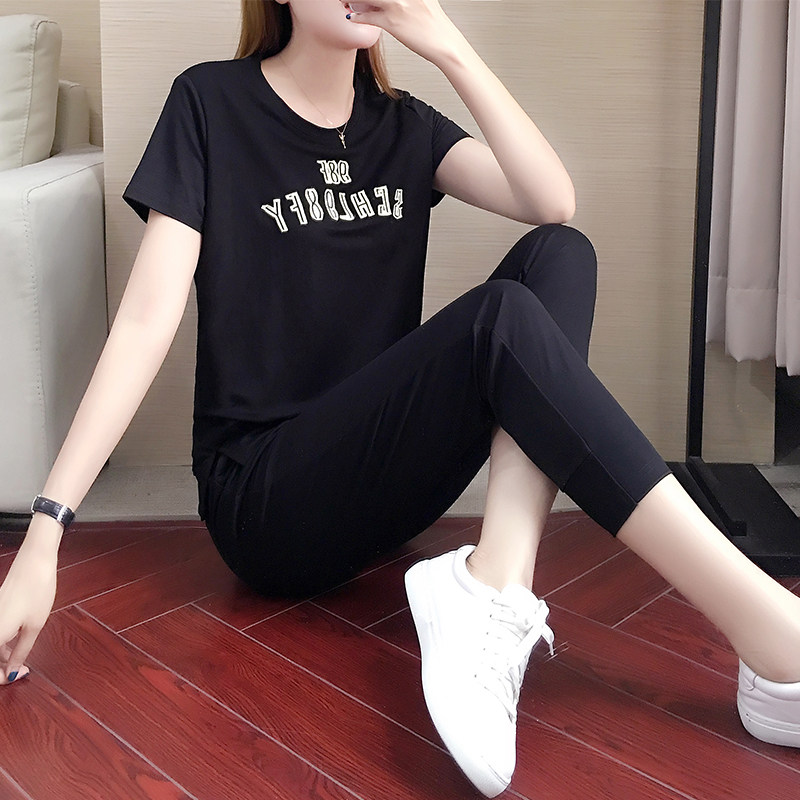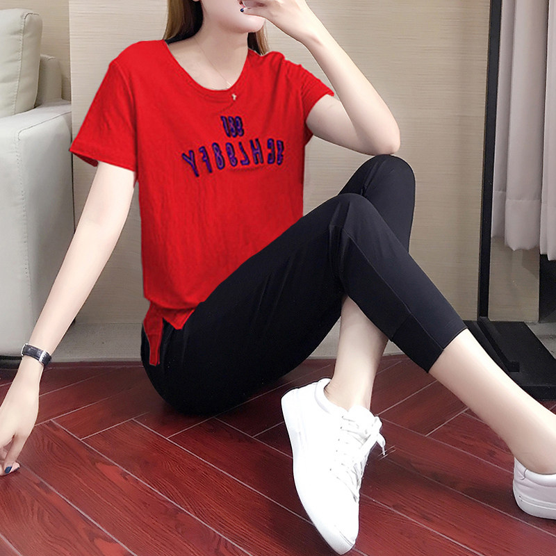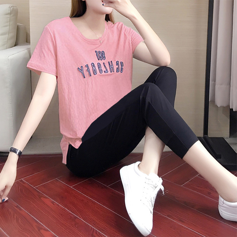 Fashion casual sports suit female summer new cotton linen Korean version nine-point pants short-sleeved T-shirt loose two-piece tide brand