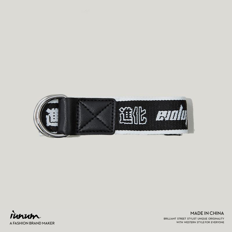 Tide brand ins super fire belt men and women canvas overalls belt hip-hop embroidery string label student trend double ring buckle tide