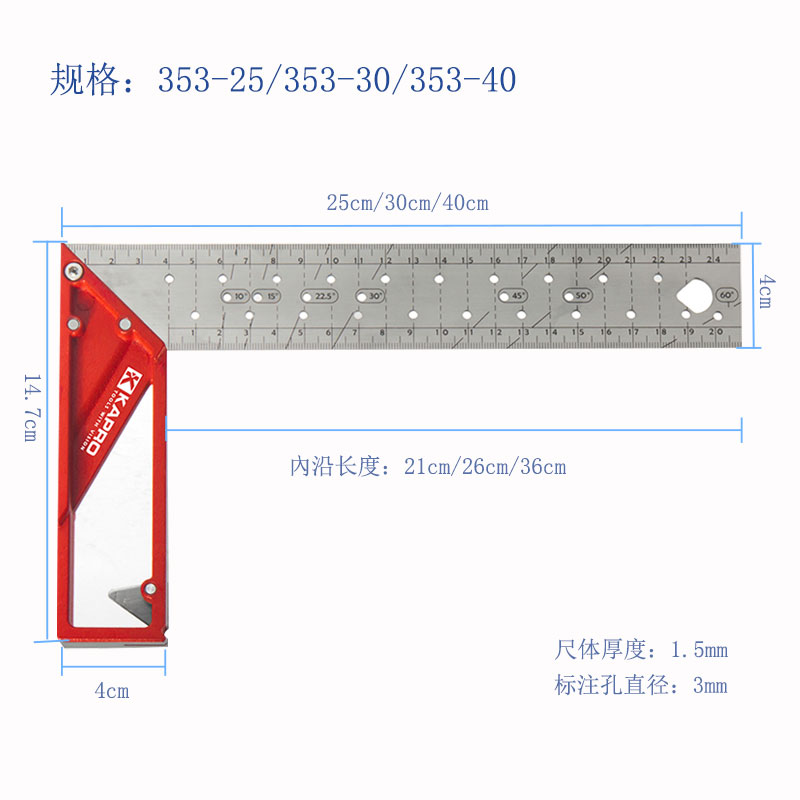 Israel KAPRO stainless steel square high precision 45 degree 90 degree woodwork ruler marking steel ruler marking angle ruler