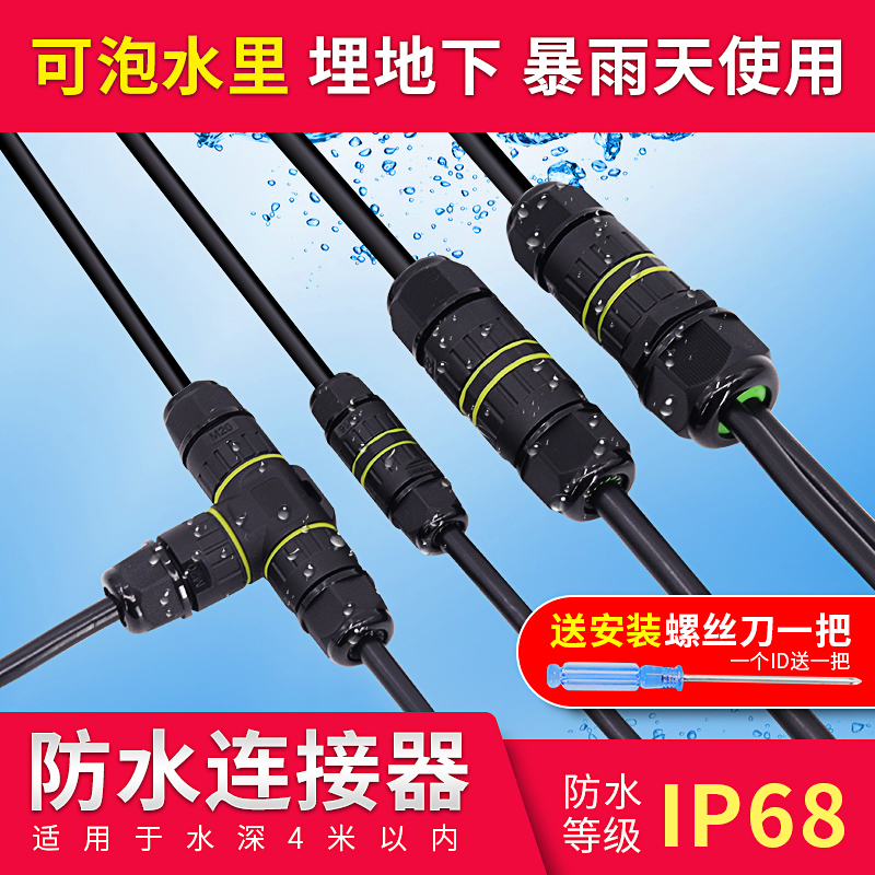 IP68 wire waterproof connector Docking cable connector T-type three-way outdoor rainproof connector Street lamp buried T