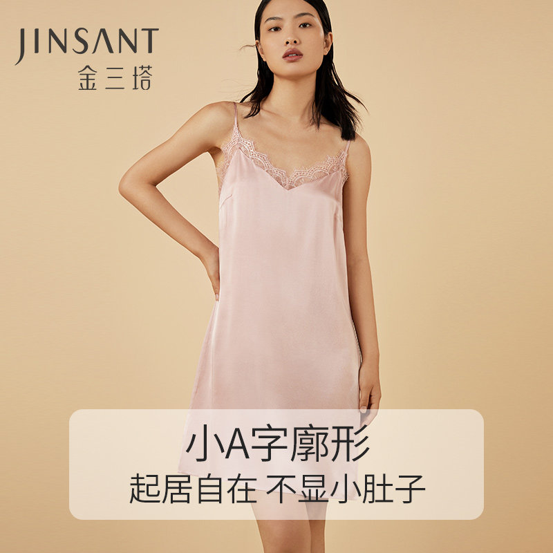 Gold Sanita 100% mulberry silk] Silk Slide Cool Sensation] Real Silk Sleepwear Women Feel V-Led Lace Sleepwear Dresses