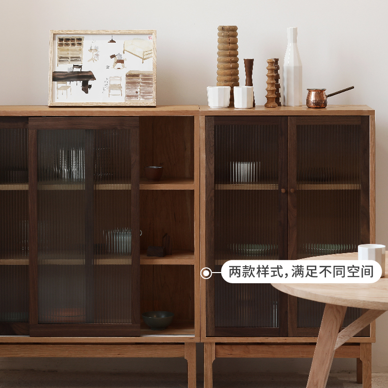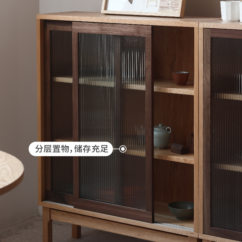 MUMO wood ink glass three-layer cabinet black walnut cherry wood dining room living room storage solid wood furniture