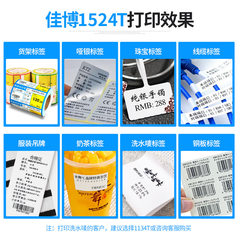 Jiabo GP1524T label printer clothing tag washing mark floating ribbon adhesive bar code printer thermal transfer jewelry standard copper silver paper certificate price shelf carbon tape