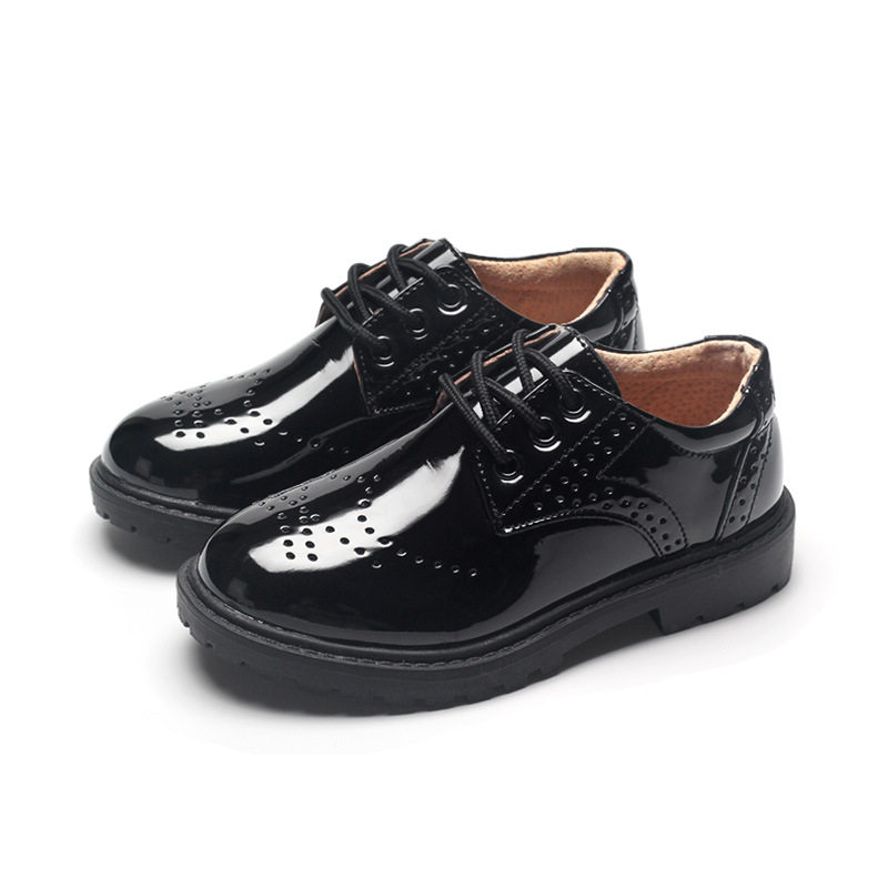 Boys and girls British style black bright leather shoes small flower girl children's dress single shoes kindergarten school performance shoes