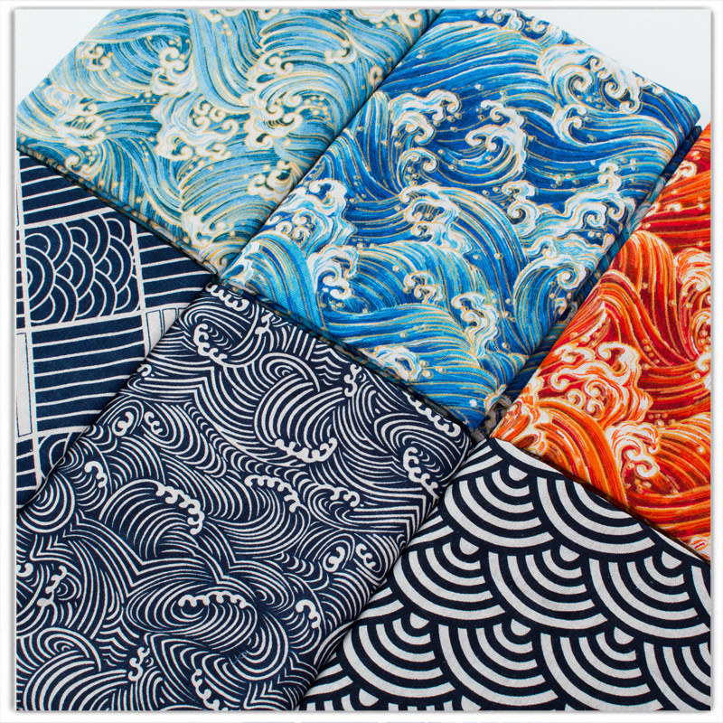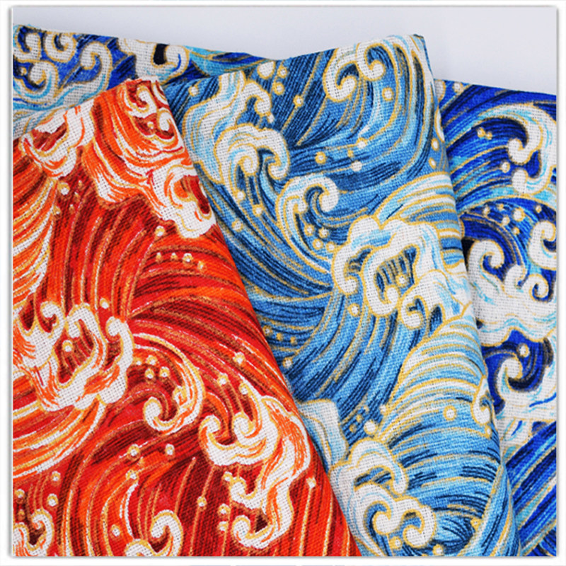 Hand DIY printing Japanese and wind cotton stamping gold fabric sofa cushion tablecloth curtain dust resistant fabric