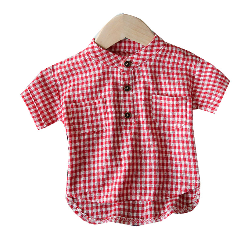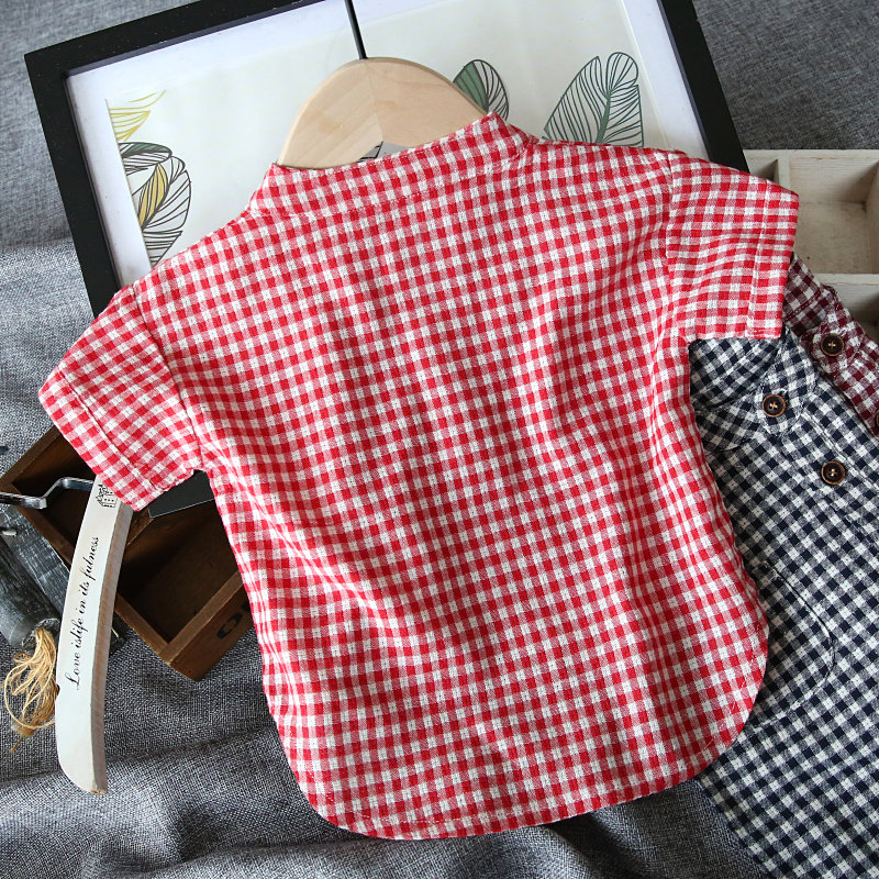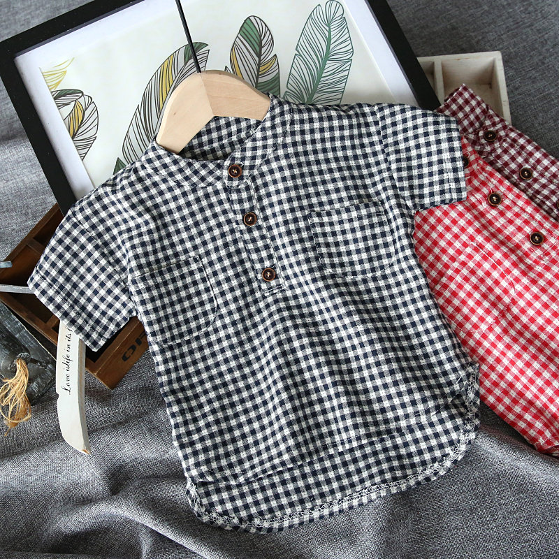 Clear Cabin Boy Clothing Baby Short Sleeve Shirt Boy Girl Girl Plaid Shirt Children Han Version Cotton Linen Short Sleeve Shirt 244-Taobao