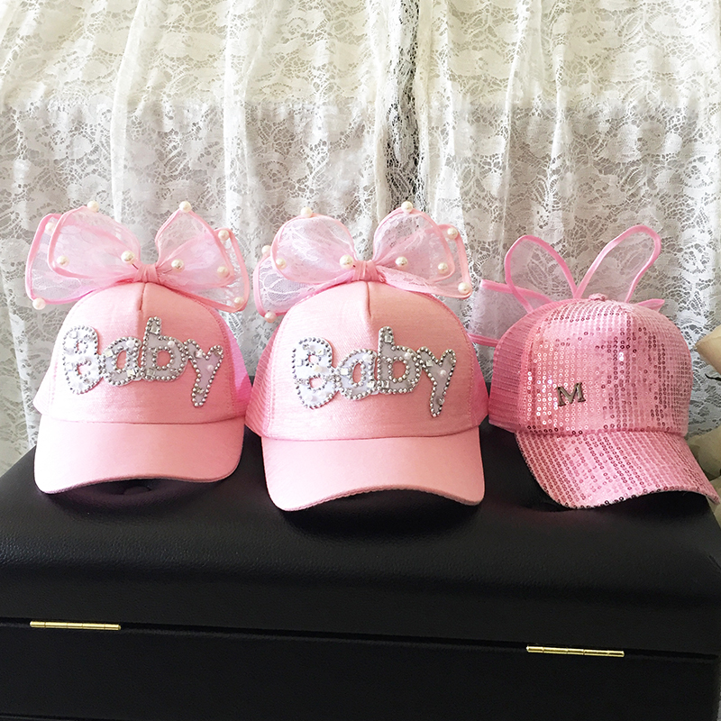 baby cute pink diamond with M letter sequin pink Bow Tie Three Beads Pink dabby cute blue Shiny Blue Diamonds M Bright Slices white Watermelon Red Sparkling