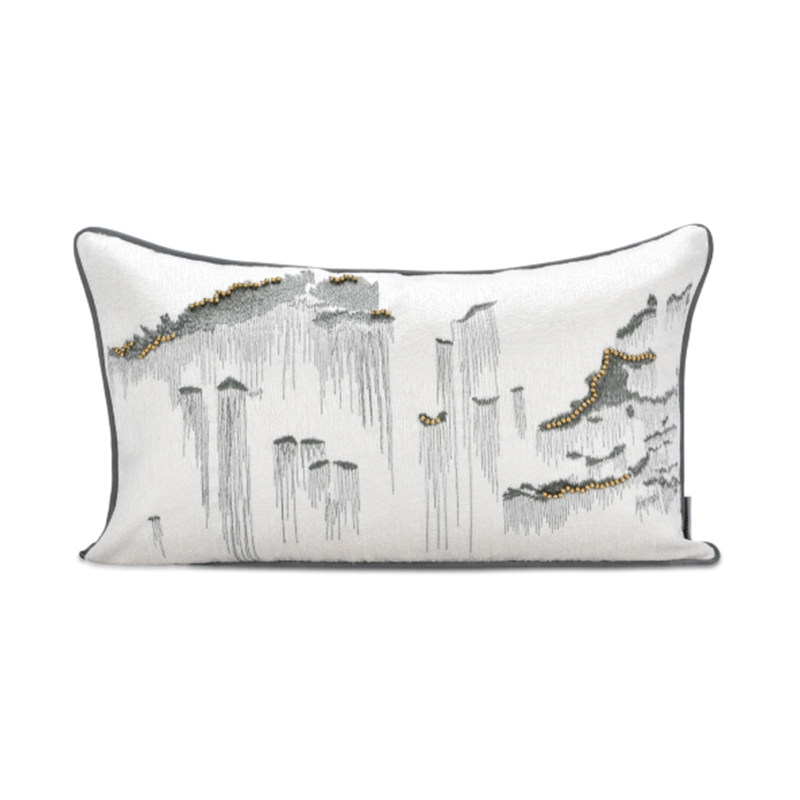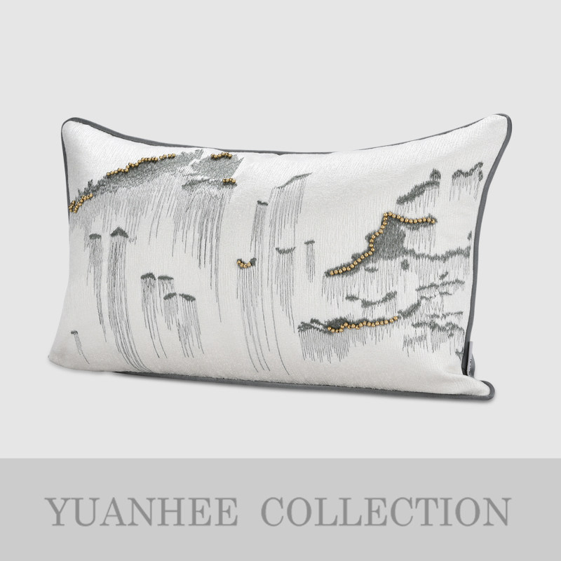 Yuanxi Yipin new Chinese model house pillow designer soft-covered sky blue embroidered landscape hand-made beaded bag