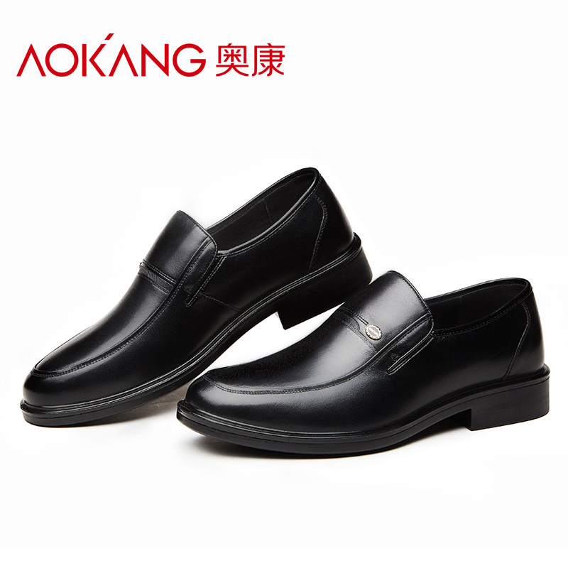 Aokang men's shoes autumn new breathable casual leather shoes men's soft bottom business dad shoes non-slip official