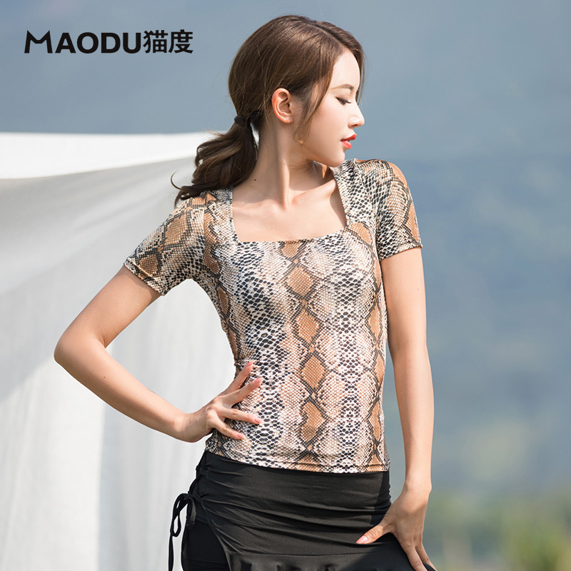 New Latin dance top female adult modern dance practice clothing national standard dance clothing top sexy short sleeve promotion