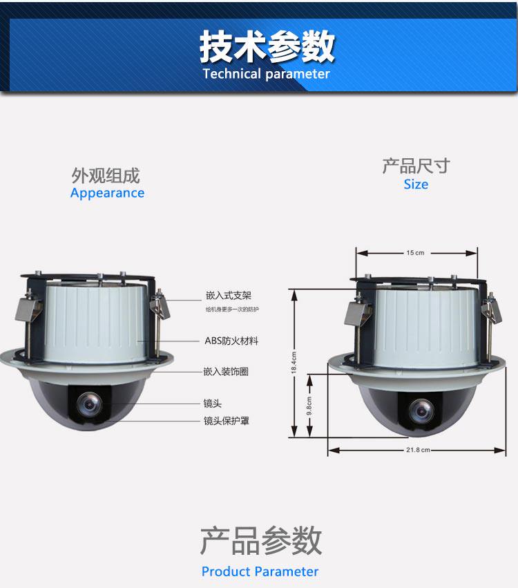 Coaxial AHD embedded indoor analog embedded 360-degree rotating high-speed dome camera suction top head