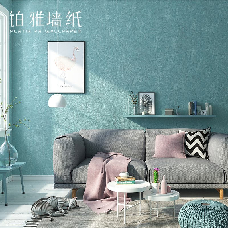 Platinum Elegant Retro Cement Grey Wallpaper Pure color blue frosted Nordic minimalist bedroom Living room wallpaper